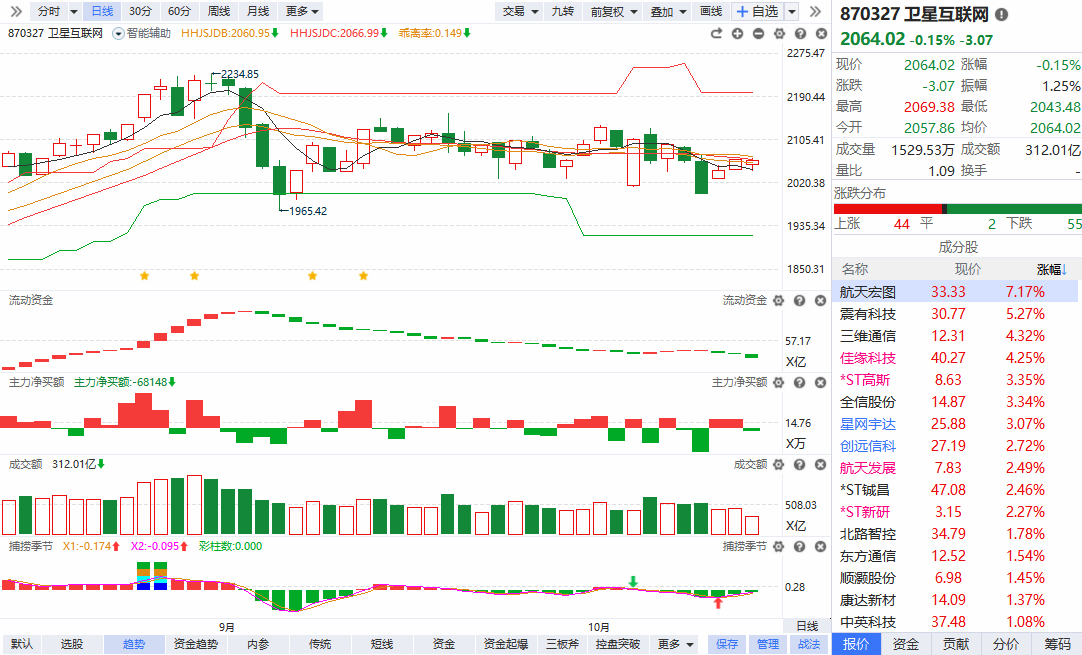 根据软件信号,板块近期流动资金持续翻绿,反弹更多是消息催化下的超跌反抽,不具备太强的持续性,反弹到辅助线压力附近,容易出现套牢盘抛压,注意对于出现60分钟顶背离死叉或日线死叉的个股,逐渐切换其他资金强势的题材。