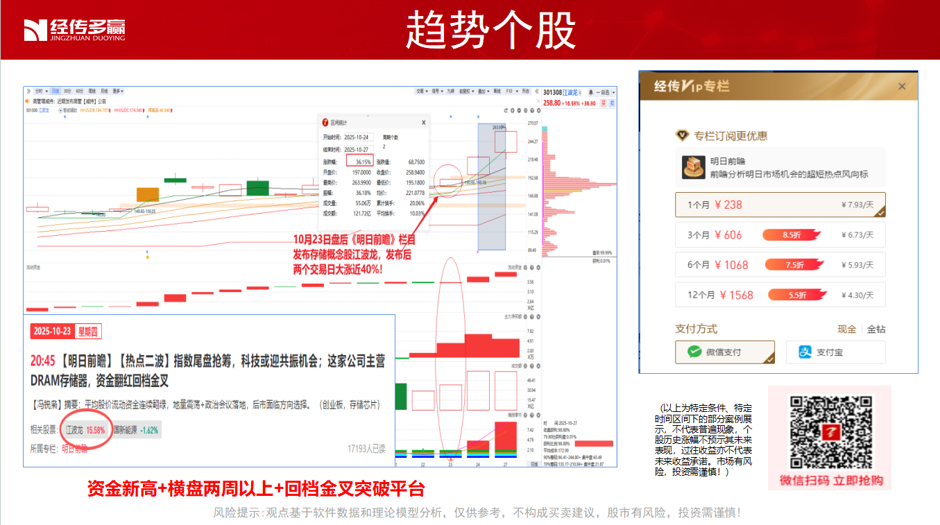 市场放量反弹,《明日前瞻》栏目紧跟指数节奏!上周四内参潜伏的存储概念股江波龙,连续两个交易日大阳上涨,发布后2天大涨40%!成功收获领涨题材的小龙头!
