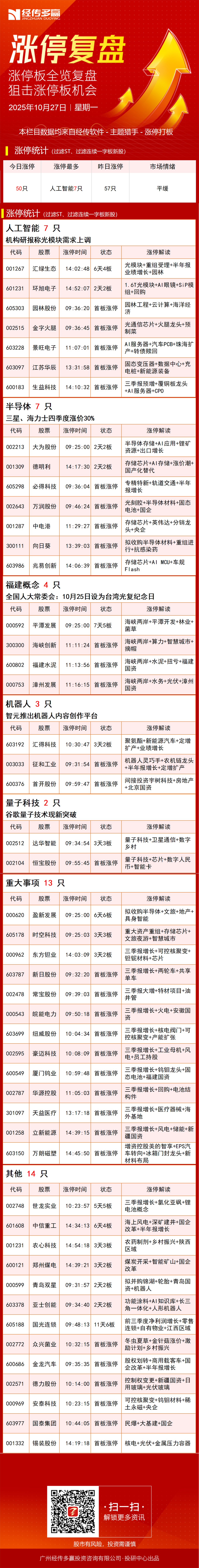 今共50股涨停,连板股总数12只,其中三连板及以上个股6只,上一交易日共10只连板股,连板股晋级率60%;29股封板未遂,封板率为63%。