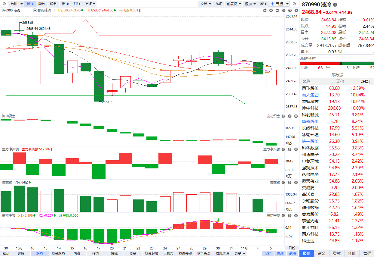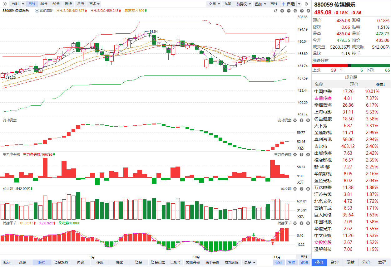 根据软件信号,板块近期流动资金持续翻绿,主力净买额绿肥红瘦,资金已经明显流出且跌破辅助线进入弱势震荡区间,短线反弹更多是消息刺激下的局部反抽,不具备太强的持续性,注意逢反抽收缩仓位或切换资金强势的题材。