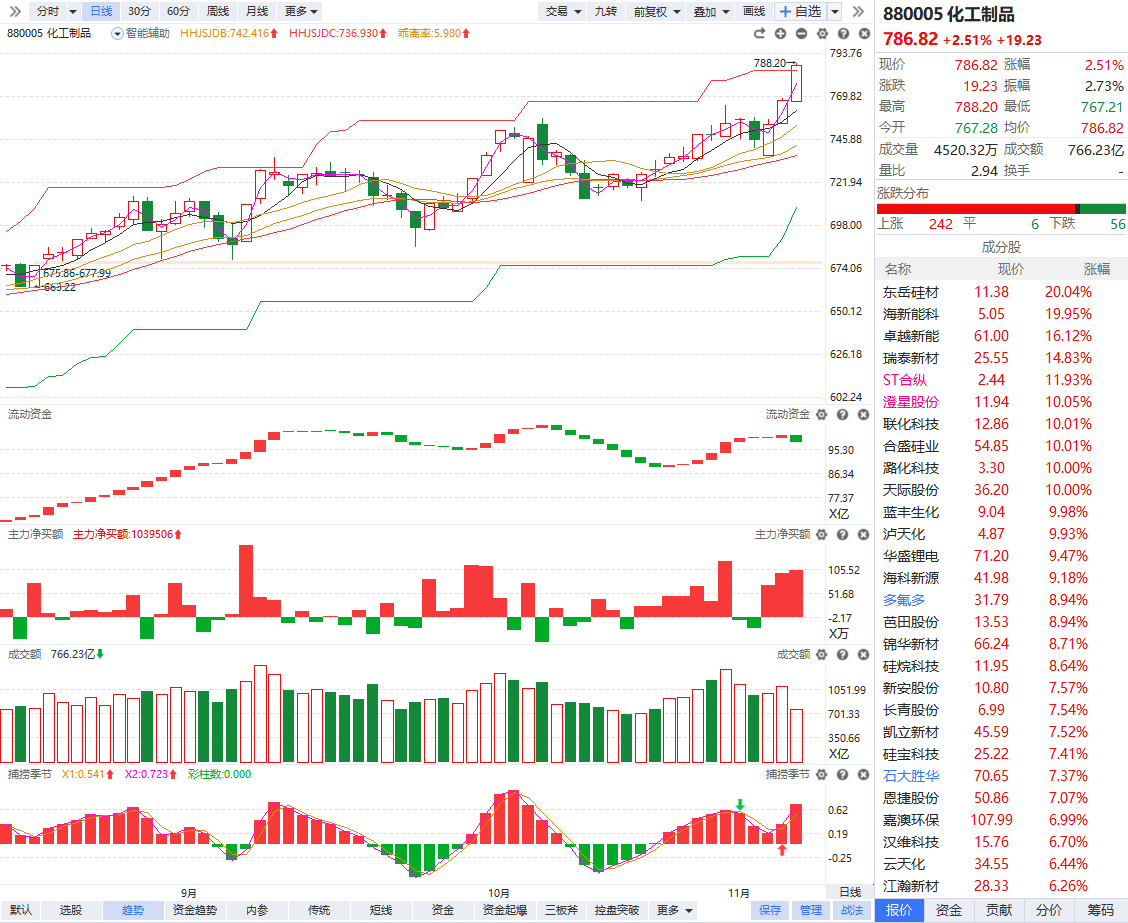 消息面上,生意社数据显示,黄磷指数11月4日上涨4%,近两周累计涨幅超过7%。此外,近期氯化亚砜市场均价大幅上涨8.61%至1552元/吨,8月以来氯化亚砜价格稳步上涨,从1300元/吨累计涨幅达19.38%。