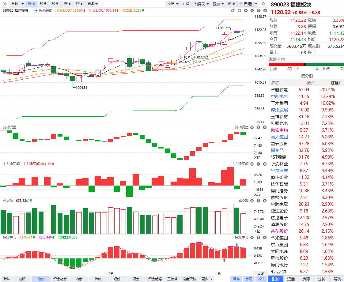 根据软件信号,板块近期流动资金持续翻红,主力净买额红肥绿瘦,资金强势背景下突破横盘平台,技术趋势和资金同步转强,有望形成持上升趋势,突破后的首次缩量死叉回档,可以积极关注低位个股回踩辅助线的分歧低吸博弈。