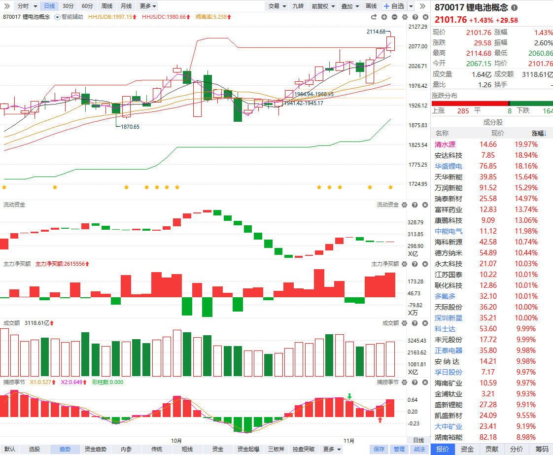 锂电池板块持续走强 十余只成分股涨停