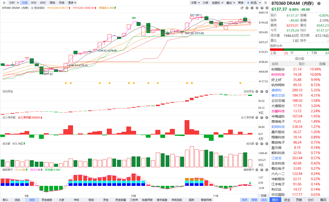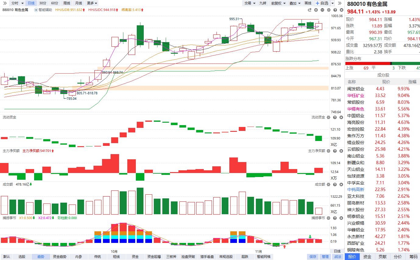 根据软件信号,板块近期流动资金开始走弱,主力净买额红肥绿瘦,回踩到辅助线附近探底回升止跌反弹,不过捕捞季节出现死叉信号,后续需要快速形成金叉反包死叉且流动资金明显翻红,才容易走出持续性。如果资金活跃度仍然低迷,那么短线震荡后可能向下跌破辅助线支撑,需要注意再次分化的风险。