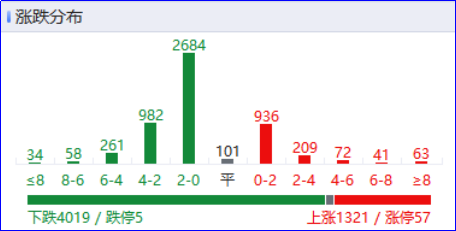 盘面上热点较为杂乱,全市场超4000只个股下跌。从板块来看,银行板块逆势上涨,农业银行、工商银行双双再创历史新高。机器人概念股局部活跃,首开股份直线涨停。油气板块走强,石化油服、准油股份双双涨停。食品饮料概念股表现较强,三元股份、中锐股份3连板,中粮糖业2连板。下跌方面,超硬材料概念股集体走弱,沃尔德跌超12%。光伏概念股重挫,通威股份、隆基绿能大跌。