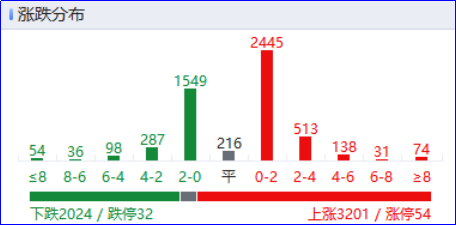 盘面上热点快速轮动切换,全市场超3200只个股上涨。从板块来看,商业航天概念集体上涨,上海港湾、航天动力等多股涨停。军工板块再度走强,中船防务4天2板。地产板块表现活跃,财信发展3连板,世联行2连板。下跌方面,锂矿概念股多数回调,盛新锂能2连跌停。算力硬件概念快速回落,工业富联触及跌停,“易中天”光模块三巨头震荡下跌。