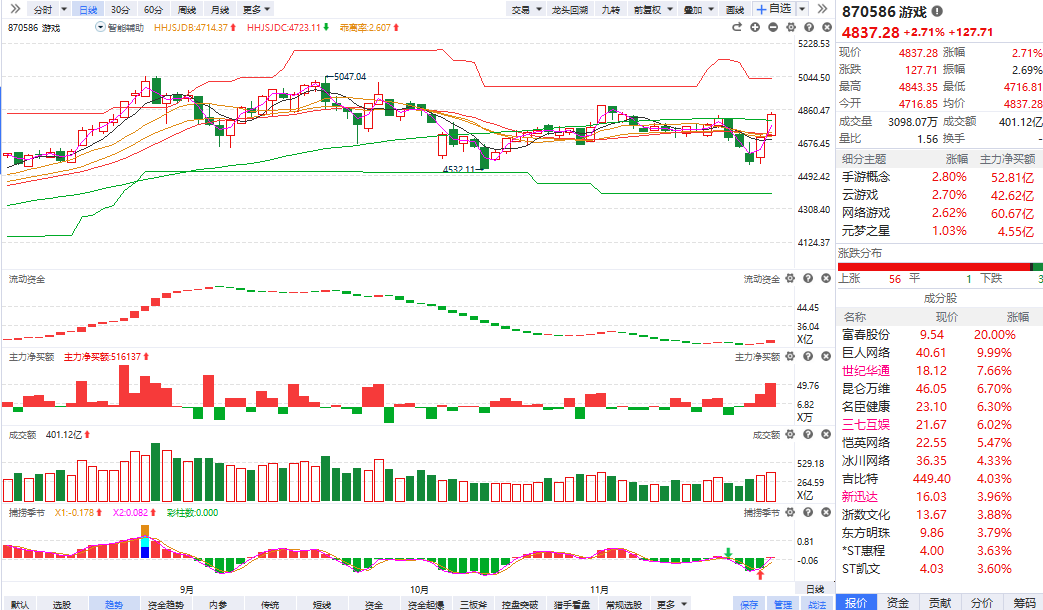 午后游戏股异动拉升,富春股份直线涨停,此前欢瑞世纪3连板,巨人网络逼近涨停,世纪华通、三七互娱、恺英网络、汤姆猫等跟涨。