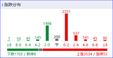盘面上热点快速轮动,全市场超3500只个股上涨。从板块来看,福建板块持续爆发,海欣食品8天7板,安记食品、太阳电缆双双4连板,舒华体育2连板。算力硬件概念快速走强,长光华芯20cm涨停创历史新高。商业航天概念股延续强势,顺灏股份6天5板,龙洲股份3连板。人形机器人概念表现活跃,骏亚科技3连板,中坚科技涨停。下跌方面,银行板块震荡走弱,重庆银行跌超3%。