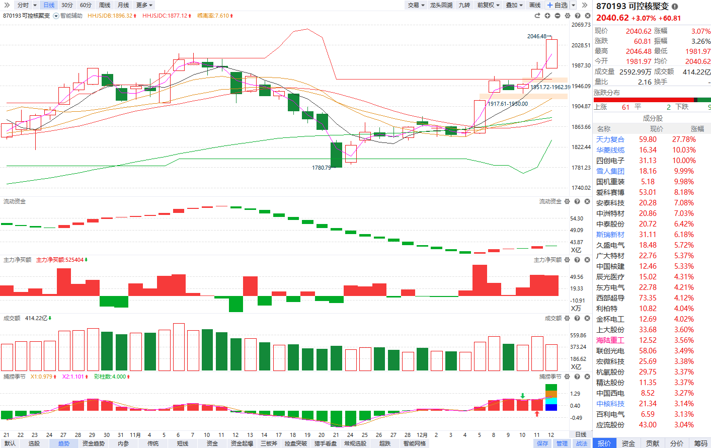 可控核聚变概念走强,雪人集团2连板,国机重装、中国一重此前涨停,中洲特材、常辅股份、哈焊华通、融发核电、合锻智能跟涨。