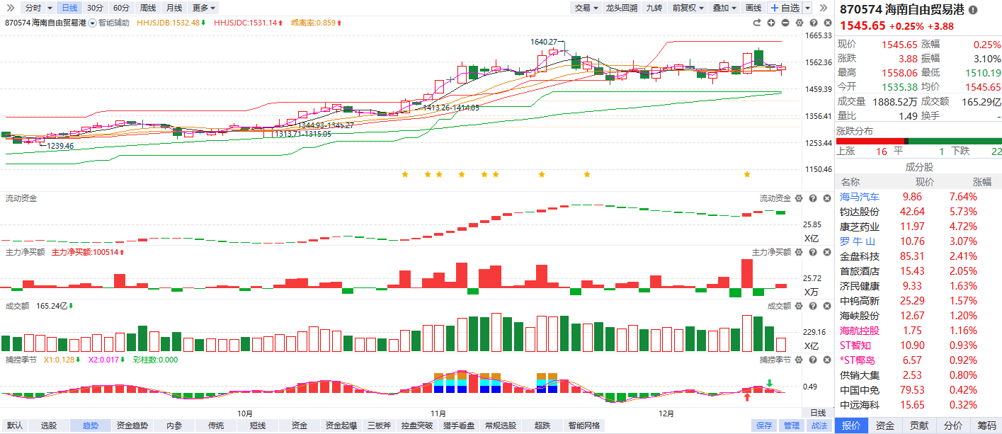 消息面上,海南“十五五”规划建议提出,加快完善自由贸易港政策制度体系。提升优化以“零关税、低税率、简税制”“五自由便利一安全有序流动”为主要特征的政策制度体系。此外,2025年12月18日,海南全岛封关运作正式启动。