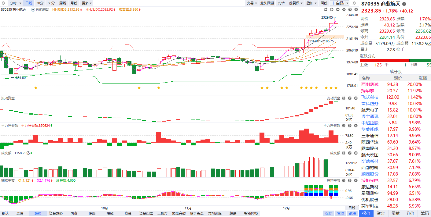 早盘商业航天概念延续强势,顺灏股份12天8板,中超控股、华菱线缆3连板,通宇通讯、天力复合、西测测试、臻镭科技跟涨。