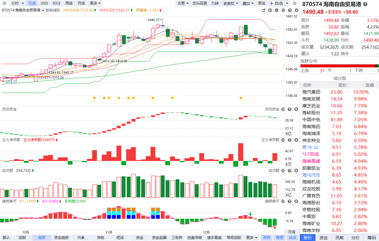 午后海南自贸概念震荡反弹,海汽集团涨停,中国中免、海南发展、康芝药业、海南海药均涨超5%。