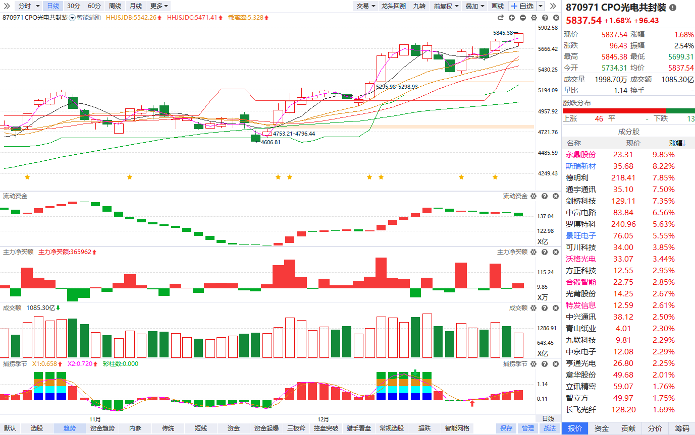 CPO概念再度拉升,环旭电子午后涨停,英唐智控20cm涨停,兆驰股份此前涨停,永鼎股份、中际旭创、胜宏科技、凌云光跟涨。
