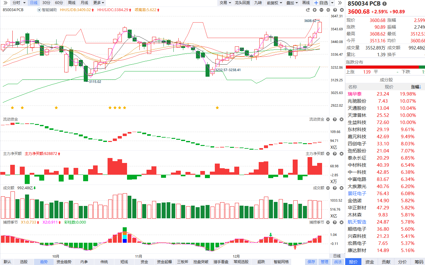 根据软件信号,板块近期主力净买额红肥绿瘦,围绕前期高点的压力平台反复横盘震荡,如能放量突破有望形成新一轮上升趋势,可以积极关注突破后的首次回档博弈;如果压力位附近连续出现冲高滞涨的上影线,则说明短期抛压较大,需要警惕高位震荡分化的风险。