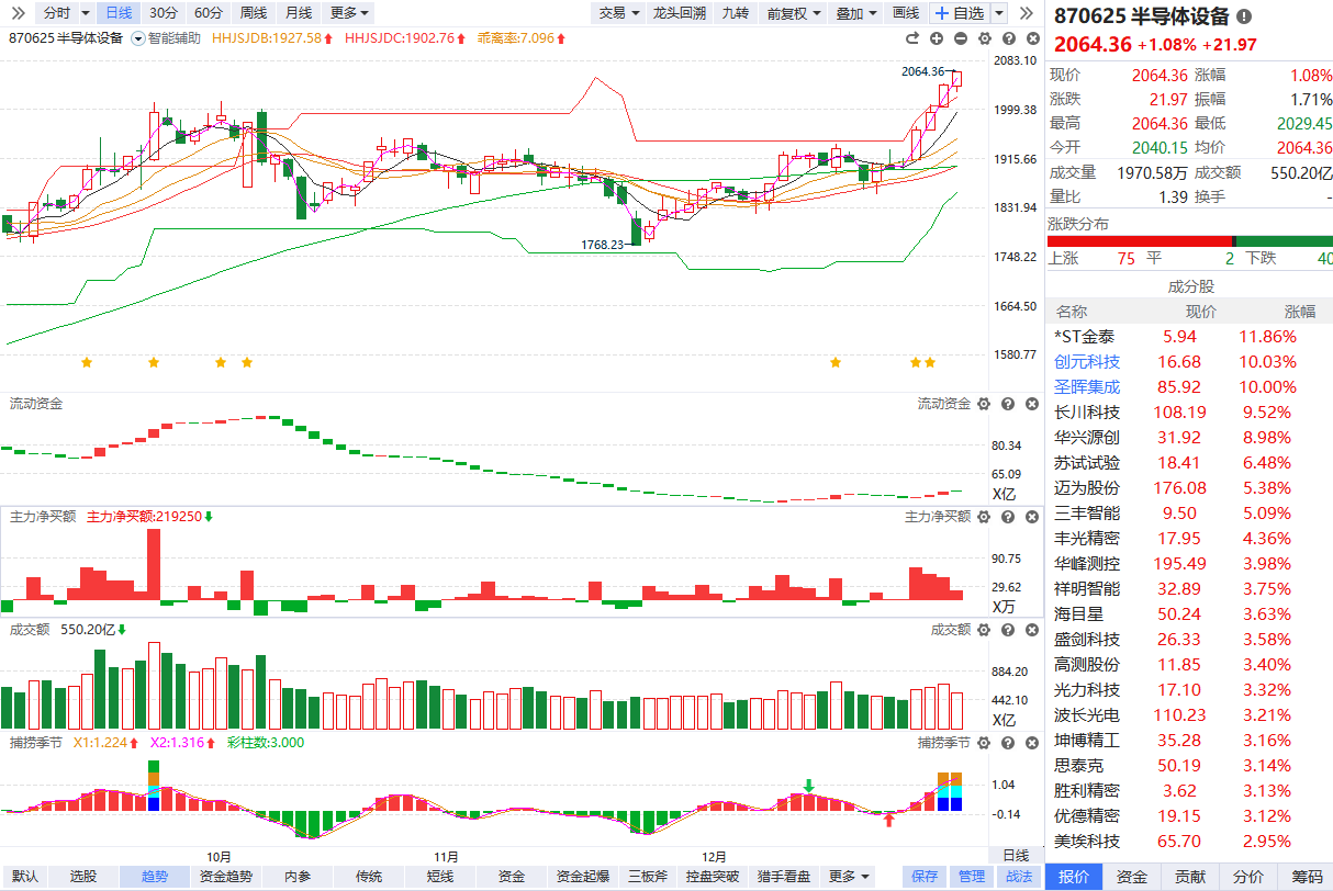 消息面上,根据国际半导体产业协会(SEMI)最新报告,预计2026年全球半导体设备销售额将达1450亿美元,2027年将攀升至1560亿美元。