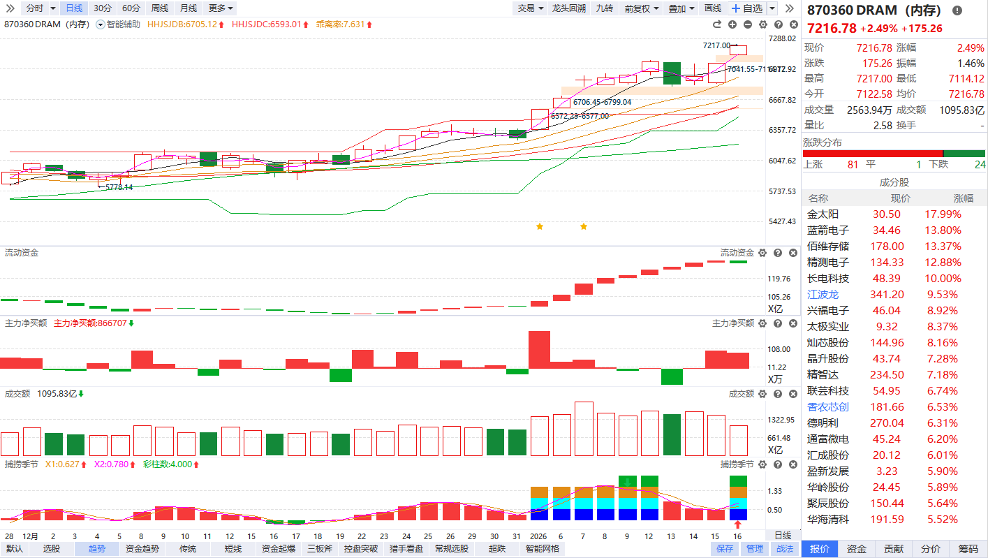 存储芯片概念震荡拉升,佰维存储涨超8%续创新高,江波龙、德明利、开普云、香农芯创、北京君正、国科微、时空科技跟涨。