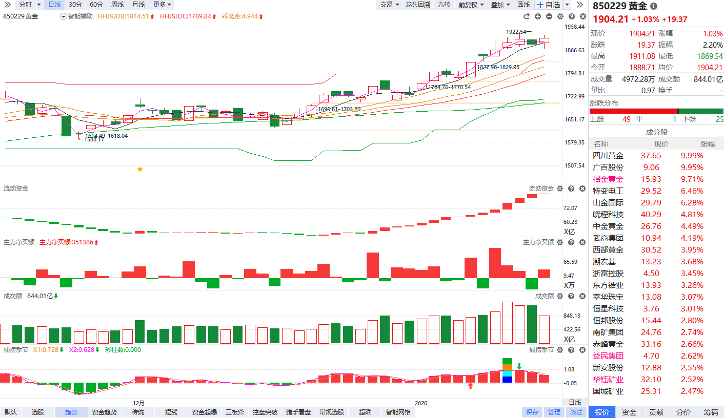 贵金属概念午后持续拉升 招金黄金、四川黄金双双涨停