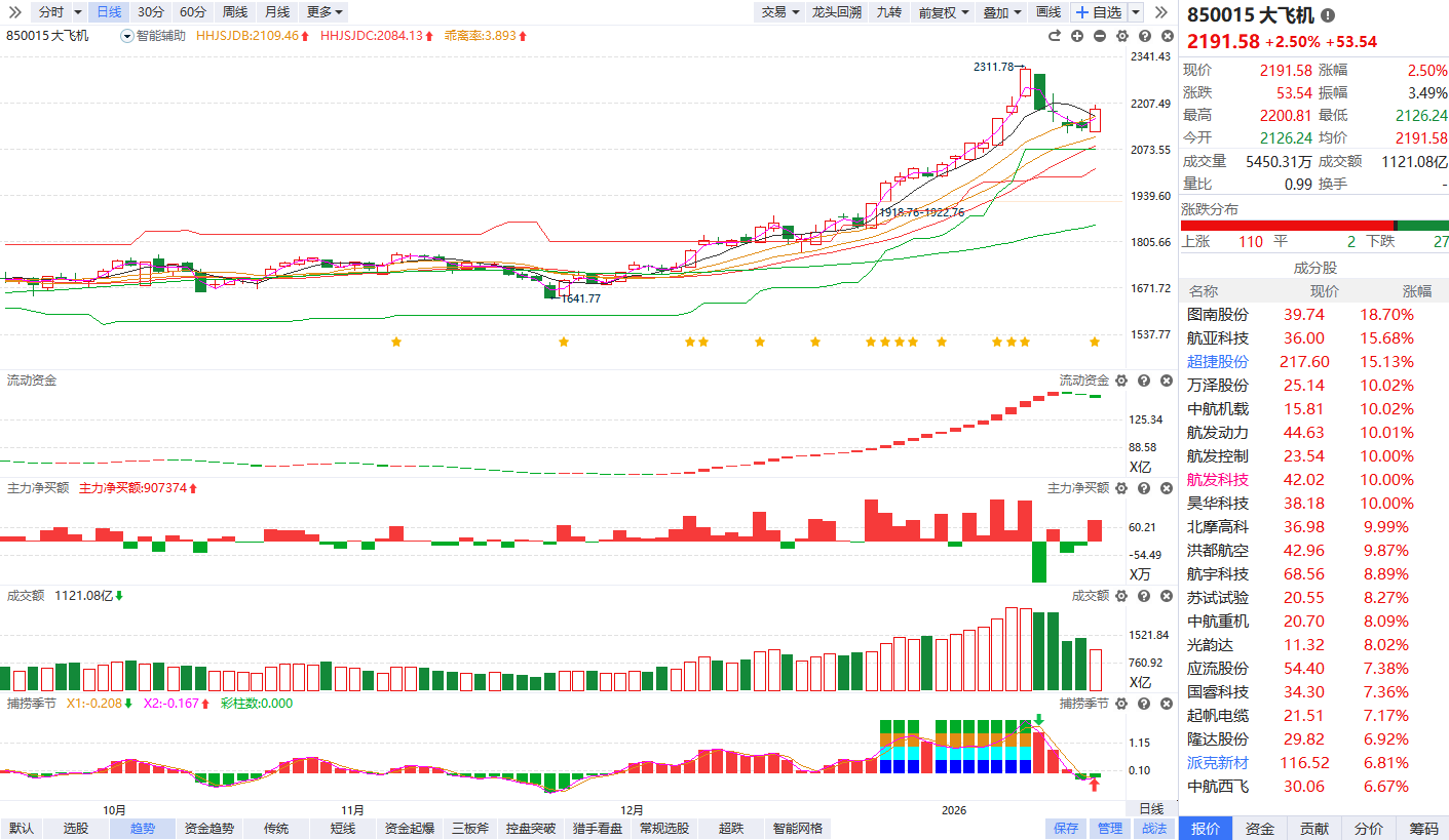 消息面上,长江证券研报称,十五五期间国产商用大飞机批产节奏及商用航空发动机自主可控均有望加速,成为军工航空板块重要的增长动力来源,航空板块相关典型个股有望实现价值重估。