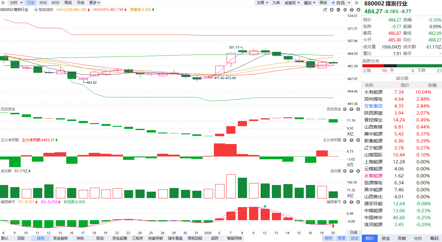 煤炭板块局部异动 大有能源直线涨停