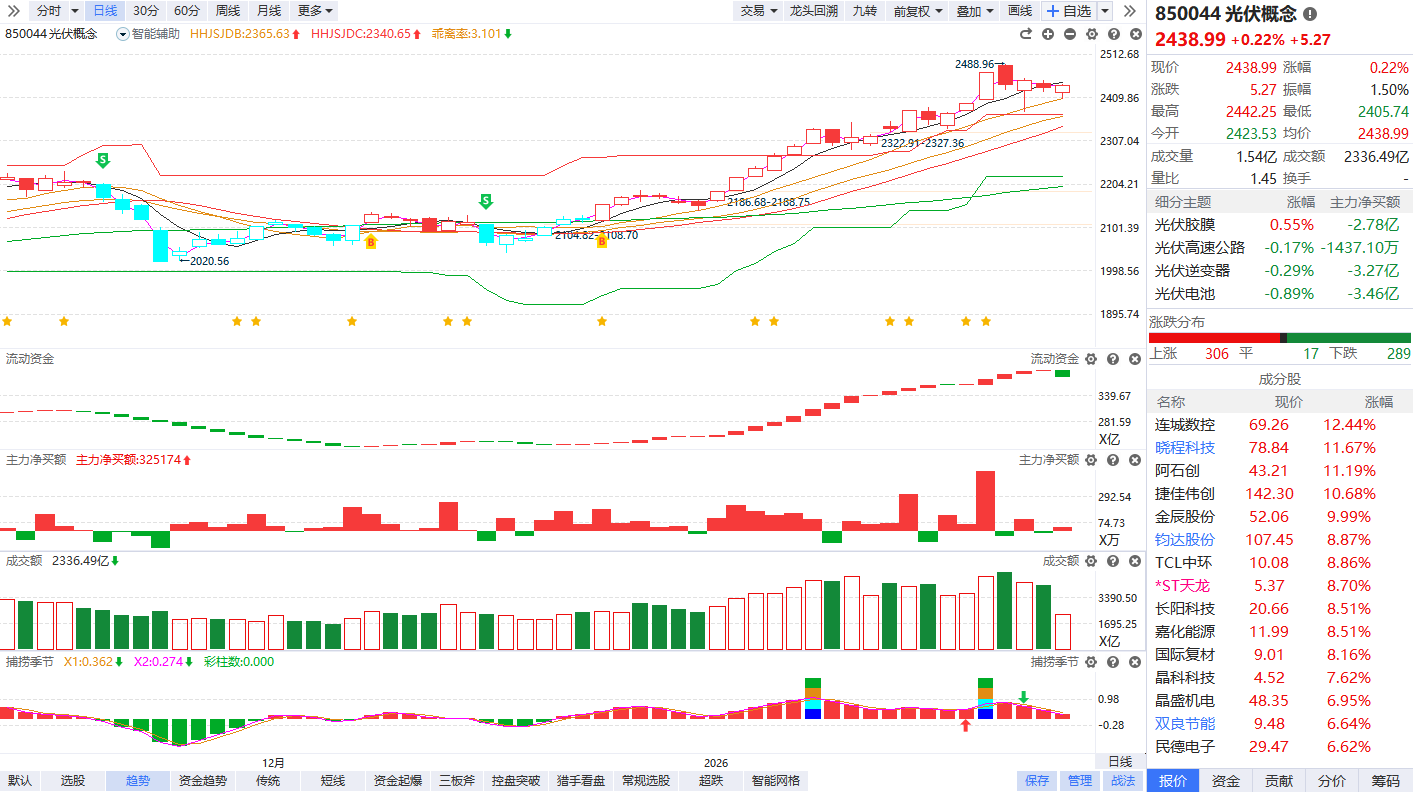 太空光伏概念震荡回升,钧达股份反包涨停,走出6天3板,连城数控涨超10%,TCL中环、捷佳伟创、双良节能、晶盛机电跟涨。