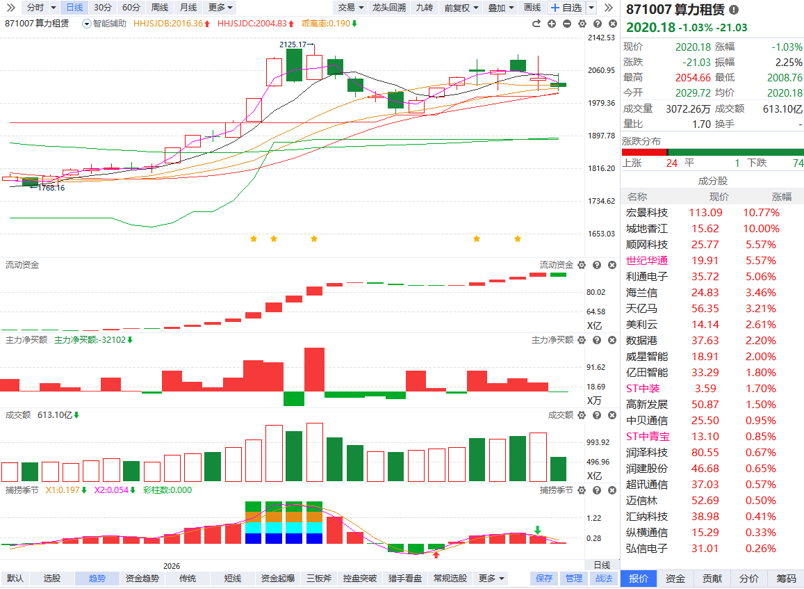 算力租赁概念震荡走强 宏景科技涨超10%续创历史新高