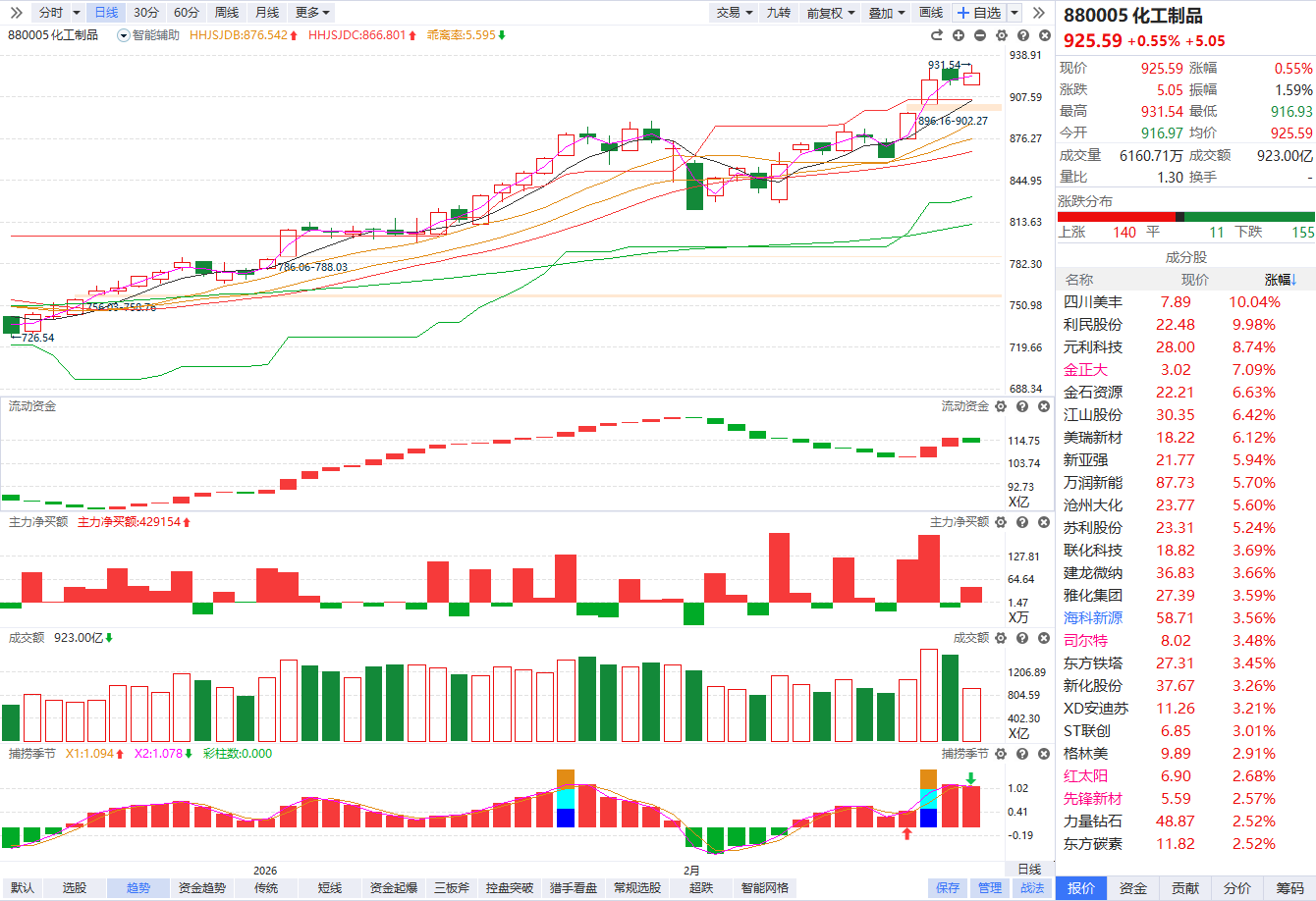 根据软件信号,板块近期流动资金持续翻红,主力净买额红肥绿瘦,资金强势背景下板块突破横盘平台,技术面和资金面同步转强,有望形成量价齐升的上升趋势,可以积极关注突破平台后的首次缩量回档博弈。