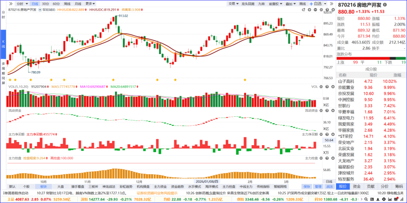 房地产板块表现活跃 中洲控股涨停