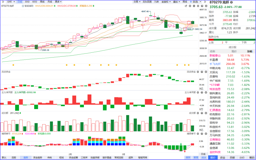 光纤概念震荡走弱,法尔胜跌触及跌停,永鼎股份、华脉科技、中天科技、特发信息、光迅科技纷纷下挫。