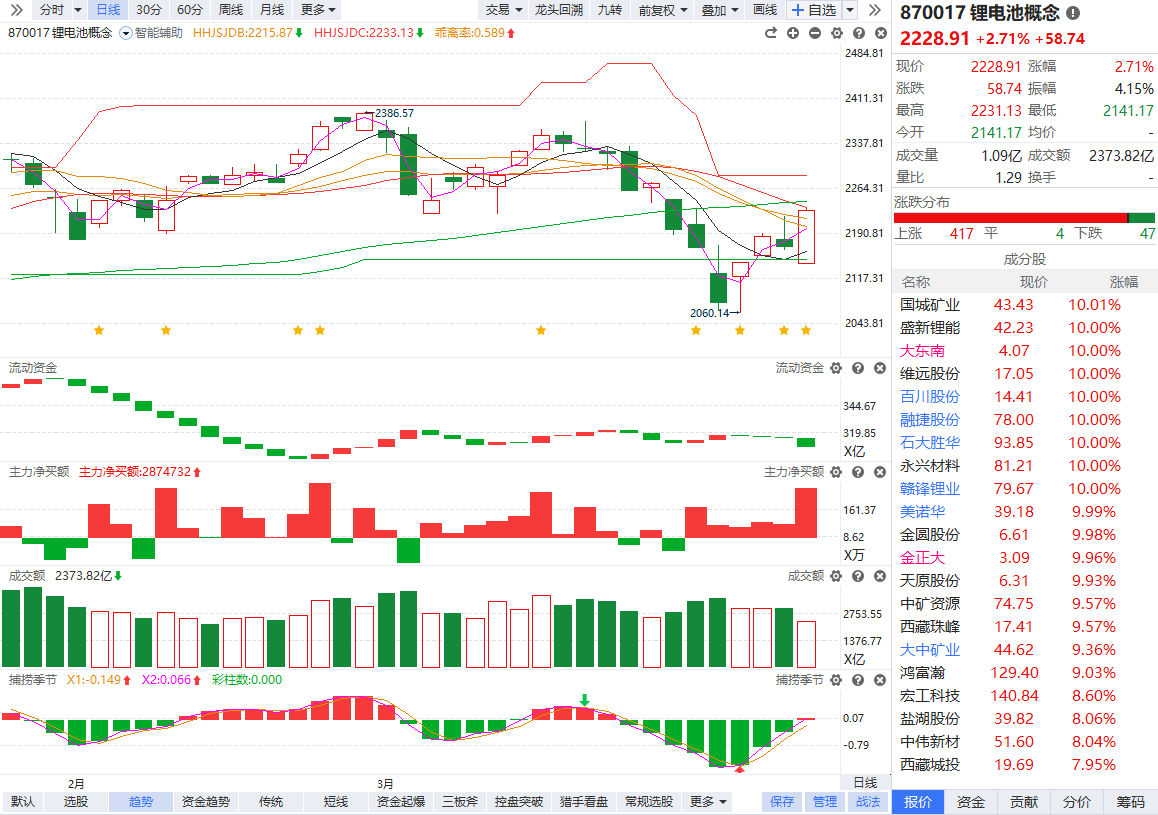 锂电材料股持续走高 十余只成分股涨停