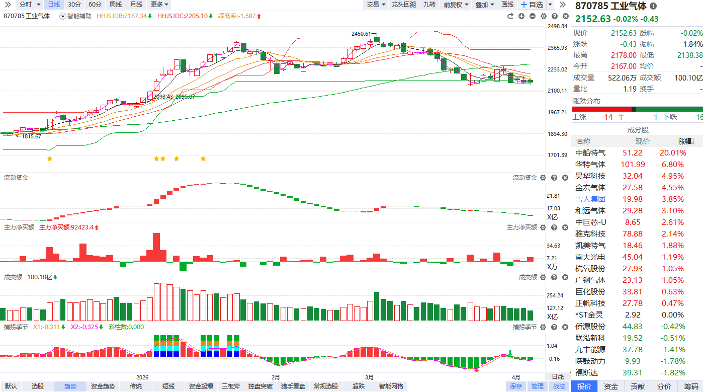 工业气体概念持续活跃 中船特气逼近20cm涨停