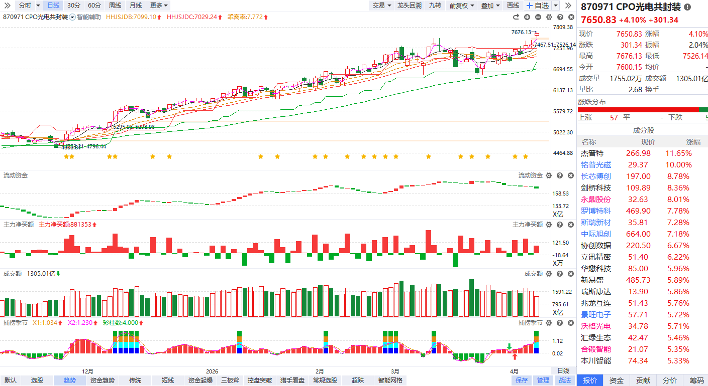 CPO概念盘初活跃 铭普光磁、东山精密双双涨停