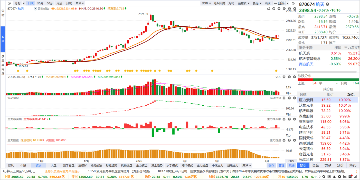 商业航天概念表现活跃 航天机电涨停