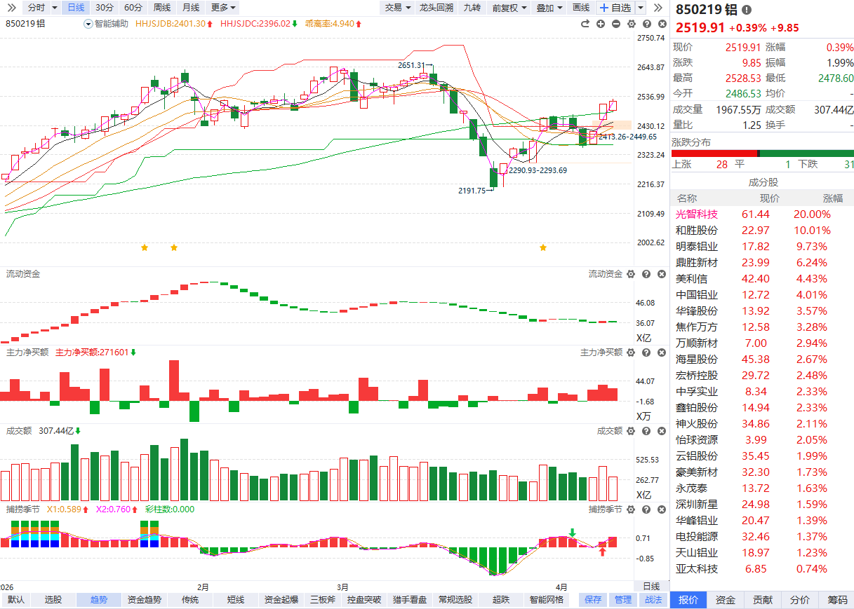 有色·铝板块震荡拉升 明泰铝业触及涨停
