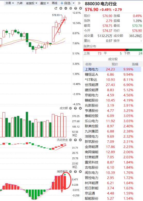 电力板块近期的趋势很好,这主要是因为市场情绪比较低迷以及科技板块的调整,让资金避重就轻选择一些位置较低的公用事业方向,像燃气、煤炭、建筑建材等都属于这一类,不过随着时间的推移以及市场连续调整也杀出了一些恐慌盘,而且今天下午指数就有再次启动的迹象,一旦市场止跌企稳,那么资金就会回流到科技方向,那么近期涨势较好的方向就有可能迎来调整行情,切勿追高买入。