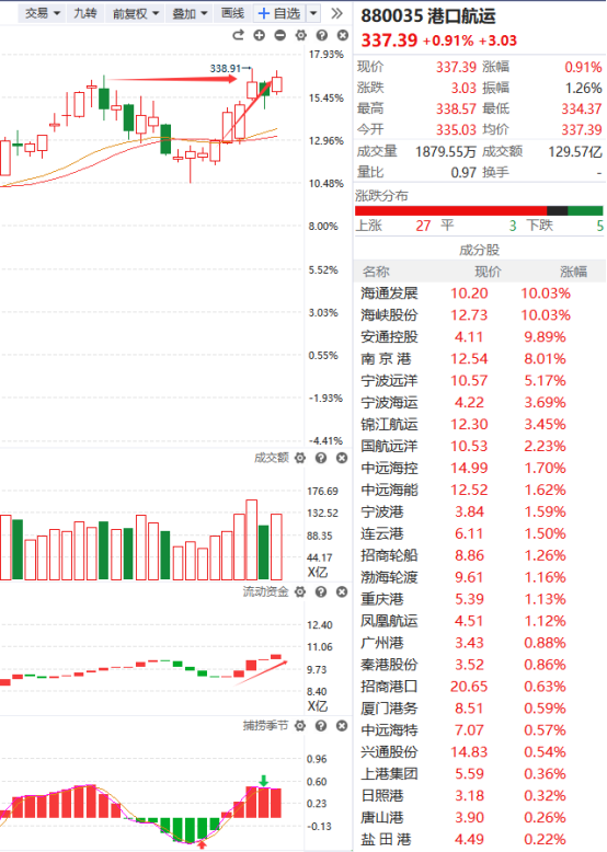 航运板块震荡走高,海峡股份、海通发展双双涨停