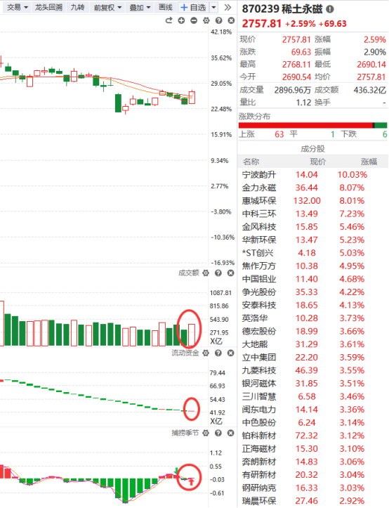 稀土永磁今天收出了反包大阳线并有点突破辅助线压制的趋势,主要得益于消息的刺激以及行情的回暖,从目前的走势来看它有点弱转强的意思,但一天的走势不代表什么,对该方向感兴趣的可以趁它所处的位置比较低轻仓布局,至于它这种上涨趋势能否得到延续还要看市场是否给力。