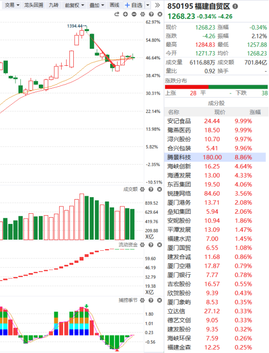 福建本地股有点想要跟随海南本地股的意思了,因为它们受到的政策刺激都是一样的,都是因为“封关”政策,恰好海南本地股因为近期连续受到资金的炒作阶段涨幅有点过大,而盘初它也走出冲高回落的走势,那是否意味着流出来的一部分资金会去选择还在低位的福建本地股呢?只要趋势没有破位都是可以适当关注一下的。