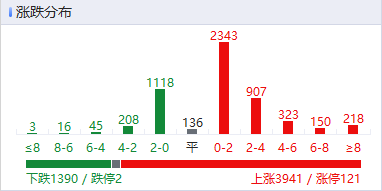 指数尾盘震荡拉升,深成指探底回升,创业板指、深成指均涨超0.5%,北证50指数大涨超3%。沪深两市成交额3.9万亿,较上一个交易日放量3935亿。盘面上,市场热点快速轮动,全市场超3900只个股上涨,其中121只个股涨停。从板块来看,光伏概念爆发,隆基绿能、钧达股份、协鑫集成、明阳智能、拓日新能等30余股涨停。商业航天概念反复活跃,十余只成分股涨停,金风科技、润贝航科、西部材料涨停。AI应用概念走高,浙文互联4天2板。贵金属概念延续强势,白银有色4连板,中国黄金、豫光金铅涨停。医药商业概念表现活跃,益丰药房涨停。截至收盘,沪指涨0.33%,深成指涨0.79%,创业板指涨0.63%。