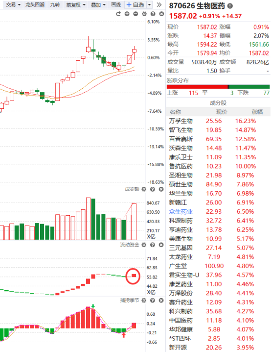 今日,生物医药概念午后快速拉升,凯普生物直线20cm涨停,海王生物、沃森生物、圣湘生物、万泽股份、智飞生物、君实生物跟涨。