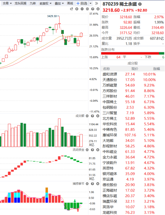 今日,稀土永磁概念震荡拉升,盛和资源触及涨停,中国稀土、北方稀土、中科磁业、中稀有色跟涨。