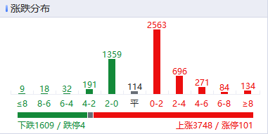 市场高开高走,午后小幅回落后再度拉升,创业板指、深成指均涨超1%。沪深两市成交额2.46万亿,较上一个交易日放量2605亿。盘面上,市场热点快速轮动,全市场超3700只个股上涨,其中101只个股涨停,连续两日超百股涨停。受涨价催化影响,稀土、磷化工、油气等涨价题材股表现强势。从板块来看,磷化工板块爆发,澄星股份、六国化工、和邦生物2连板。稀土永磁概念持续拉升,中色股份、包钢股份涨停。锂矿概念走强,大中矿业涨停。半导体产业链表现活跃,有研硅、和林微纳双双20CM涨停。房地产板块表现强势,我爱我家、城投控股涨停。截至收盘,沪指涨0.72%,深成指涨1.29%,创业板指涨1.41%。