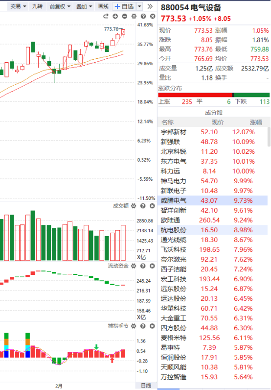 电气设备的走势跟上面那个风电板块如出一辙,也是在大家毫无察觉的时候创出了历史新高,就目前而言各项指标都还表现得不错,继续保持跟踪即可。