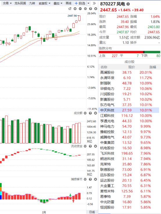 风电板块大家平时可能关注的比较少,但这并不影响它缓慢攀升,就目前而言它的走势非常不错,成交额能保持放量状态,流动资金持续翻红,捕捞季节收出金叉且红柱还在延长,市场处于震荡时就会有一些平时不怎么被我们所关注的板块在静悄悄地上涨,等引起我们注意时它已经有了较大的涨幅,对该板块继续保持跟踪。