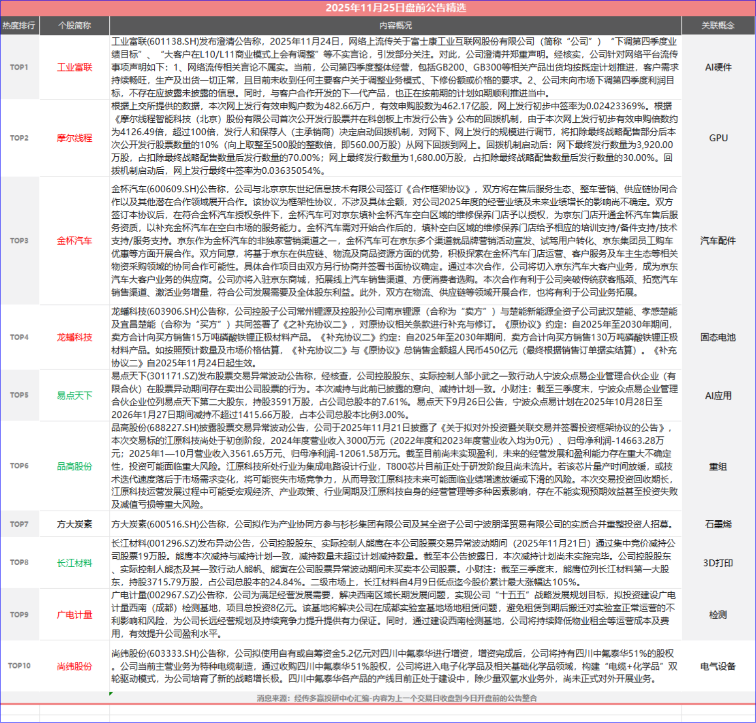 品高股份(688227.SH)披露股票交易异常波动公告,公司于2025年11月21日披露了《关于拟对外投资暨关联交易并签署投资框架协议的公告》,本次交易标的江原科技尚处于初创阶段,2024年度营业收入3000万元(2022年度和2023年度营业收入均为0元)、归母净利润-14663.28万元;2025年1—10月营业收入3561.65万元、归母净利润-12061.58万元。截至目前尚未实现盈利,未来的经营发展和盈利能力存在重大不确定性,投资可能面临重大风险。江原科技所处行业为集成电路设计行业,T800芯片目前正处于研发阶段且尚未流片。若该芯片量产时间放缓,或技术迭代速度落后于市场需求变化,将可能丧失市场竞争力,从而导致江原科技未来可能面临业绩增速放缓或下滑的风险。本次交易投资回收期长,江原科技运营发展过程中可能受宏观经济、产业政策、行业周期及江原科技自身的经营管理等多种因素影响,存在不能实现预期效益甚至投资失败及减值亏损等重大风险。