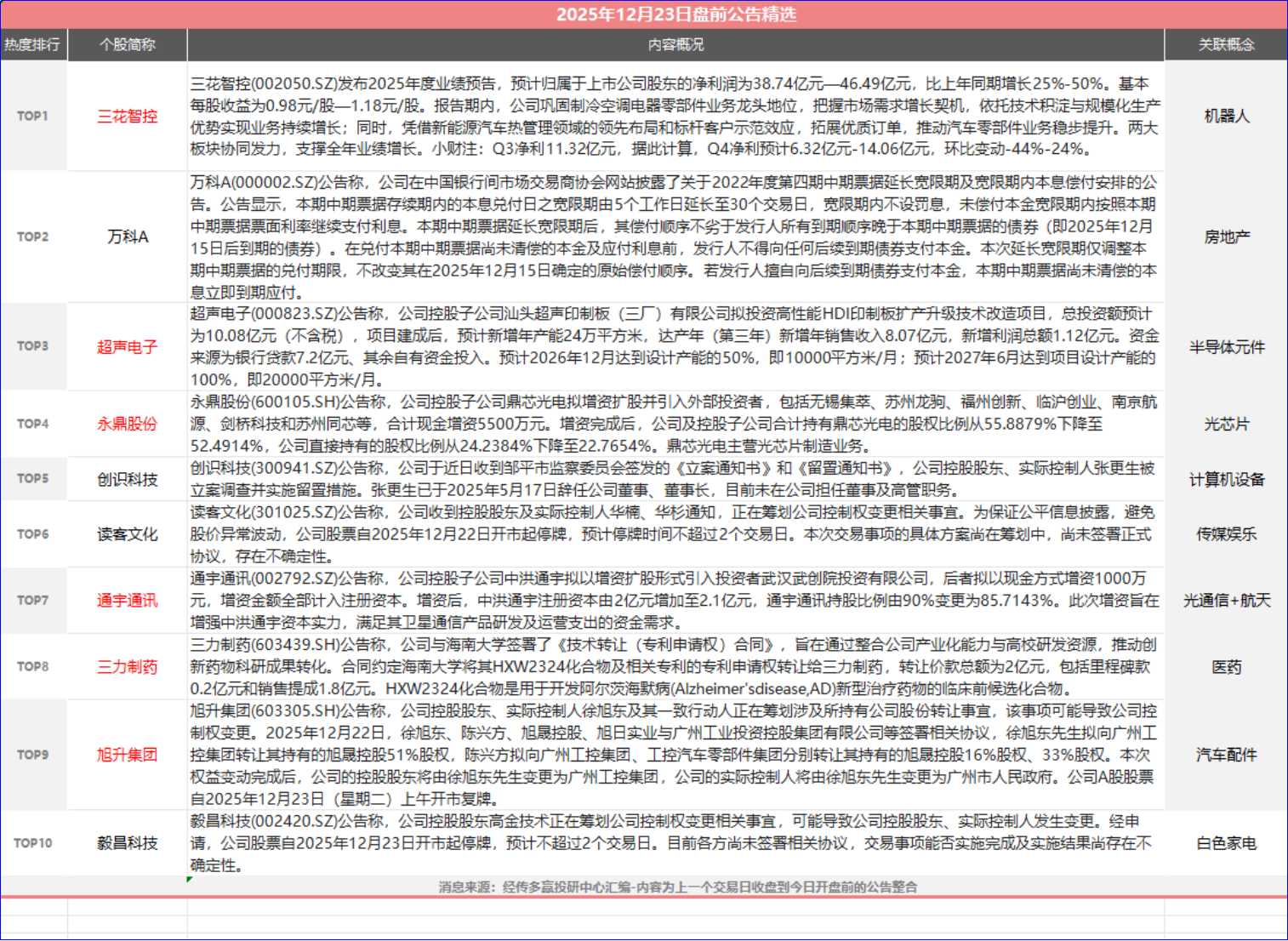 国机精工(002046.SZ)公告称,公司股票于2025年12月18日、12月19日、12月22日连续三个交易日内日收盘价格涨幅偏离值累计超过20%,属于股票交易异常波动情况。经核查,公司前期披露的信息不存在需要更正、补充之处,近期公司经营情况及内外部经营环境未发生重大变化,公司及控股股东、实际控制人不存在关于公司的应披露而未披露的重大事项或处于筹划阶段的重大事项。公司郑重提醒广大投资者,所有信息均以在指定媒体刊登的正式公告为准,请广大投资者理性投资,注意投资风险。