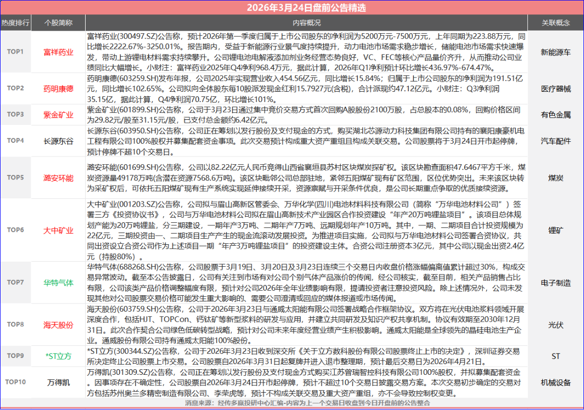 华电辽能(600396.SH)公告称,公司股票于3月20日、23日连续两个交易日内收盘价格涨幅偏离值累计超过20%,构成交易异常波动。3月10日至23日,10个交易日股价累计上涨89.81%,近期换手率显著升高,交易风险较大。公司最新滚动市盈率为158.97倍,市净率为7.51倍,均远高于行业平均水平。公司预计2025年净利润为0.25亿元至0.35亿元,同比减少59.17%至70.84%。经核查,公司及控股股东不存在应披露未披露的重大事项,生产经营正常。
