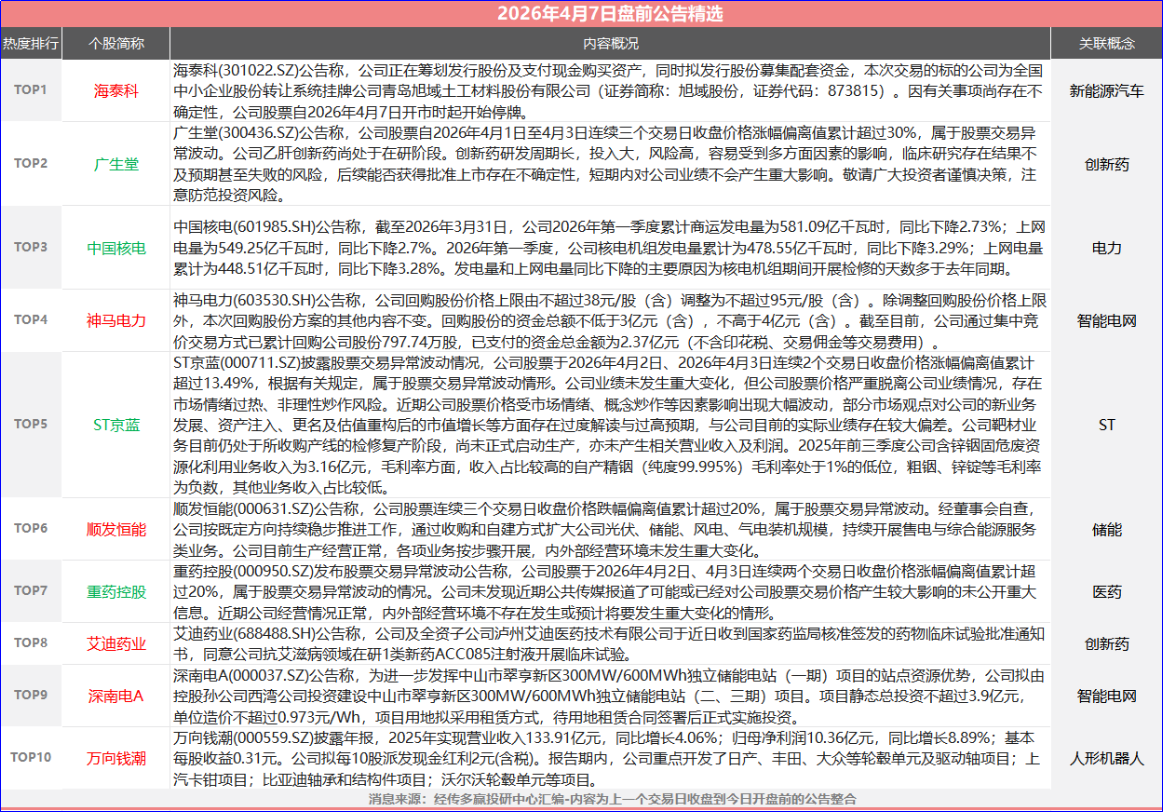 广生堂(300436.SZ)公告称,公司股票自2026年4月1日至4月3日连续三个交易日收盘价格涨幅偏离值累计超过30%,属于股票交易异常波动。公司乙肝创新药尚处于在研阶段。创新药研发周期长,投入大,风险高,容易受到多方面因素的影响,临床研究存在结果不及预期甚至失败的风险,后续能否获得批准上市存在不确定性,短期内对公司业绩不会产生重大影响。敬请广大投资者谨慎决策,注意防范投资风险。