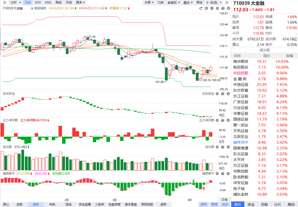 大金融板块走高 中信证券涨超8%