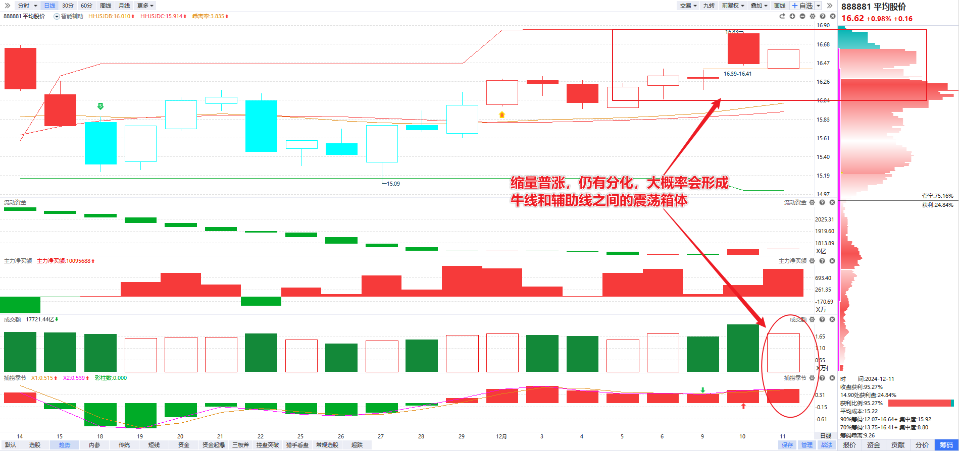 3、前一天的流动资金和主力净买额都要翻红,主力净买额最好大于2000万(有资金流入的调整,隔日修复的概率才更大);