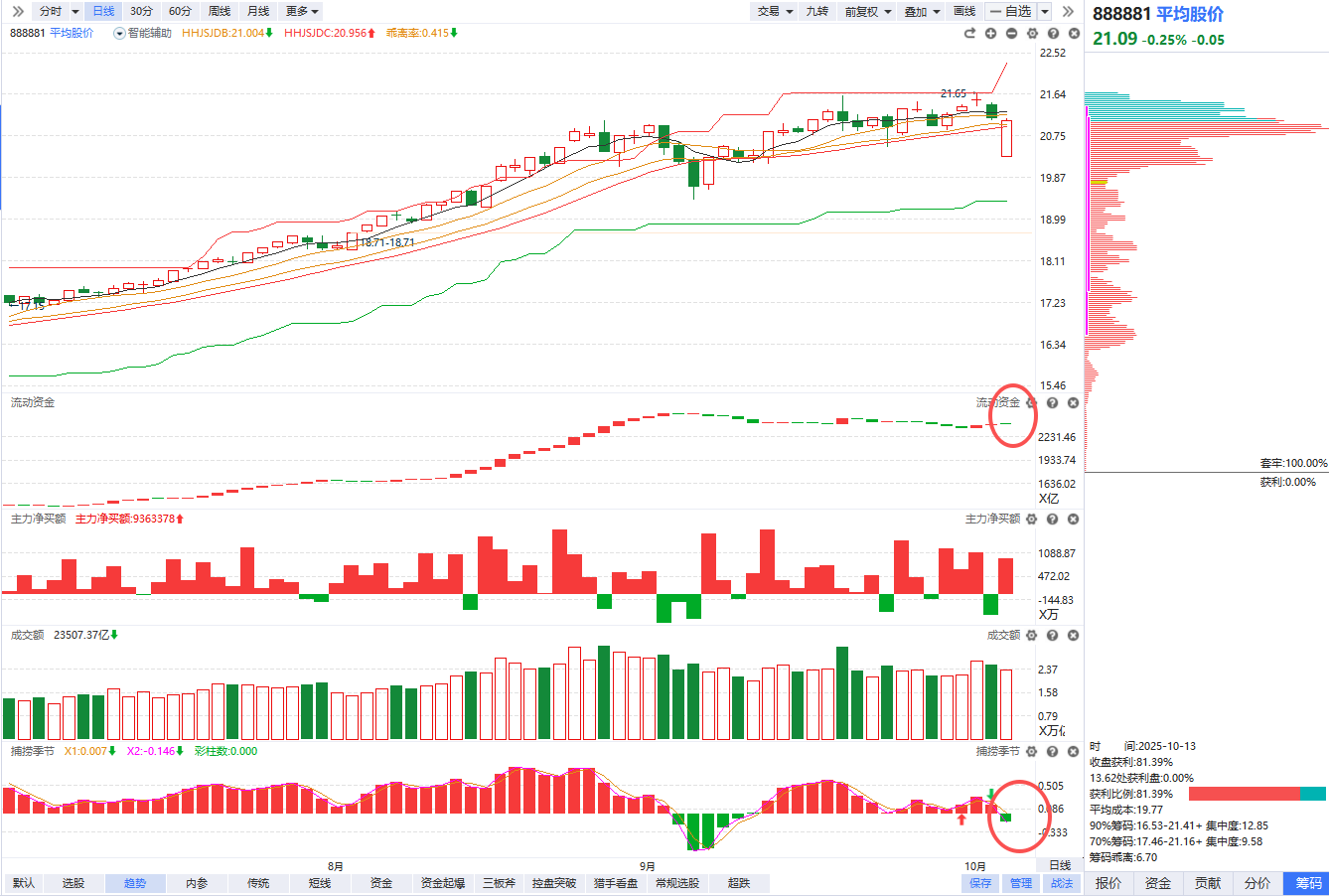 指数角度,平均股价低开高走,周末利空带来的恐慌情绪初步消化,不过日内反弹太一致了,量也缩得厉害,那么反弹次日又是去弱留强的分化节奏了,下午大部分个股都拉过了尾盘,明天应该普遍都是低开震荡,如果回调没有跌破今天阳线实体一半的支撑位,那震荡1-2个交易日后仍然是回档布局节点,如果出现阴包阳的兑现,就要适当谨慎。